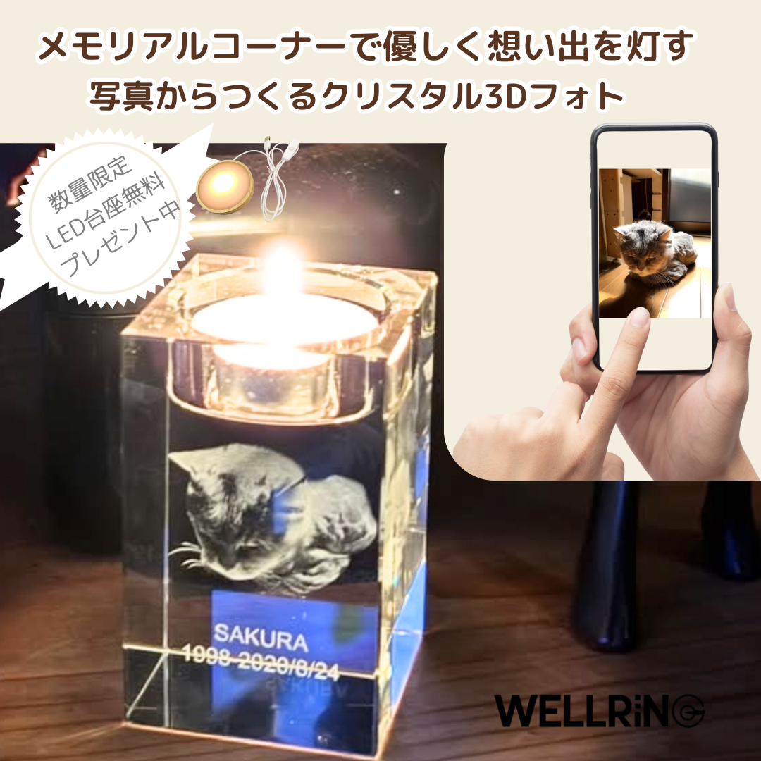 大切な写真を形に残す クリスタル3Dフォト〈キャンドル型〉お仏壇や思い出コーナーに最適