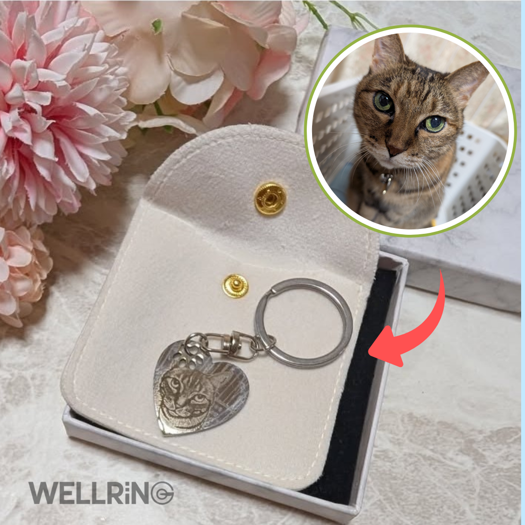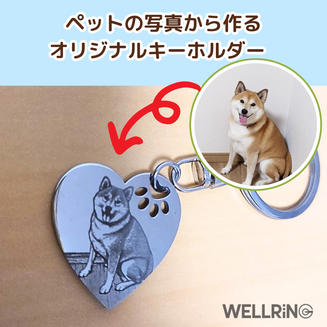 ペットの写真から作るオーダーメイドのハート形キーホルダー【両面彫刻】