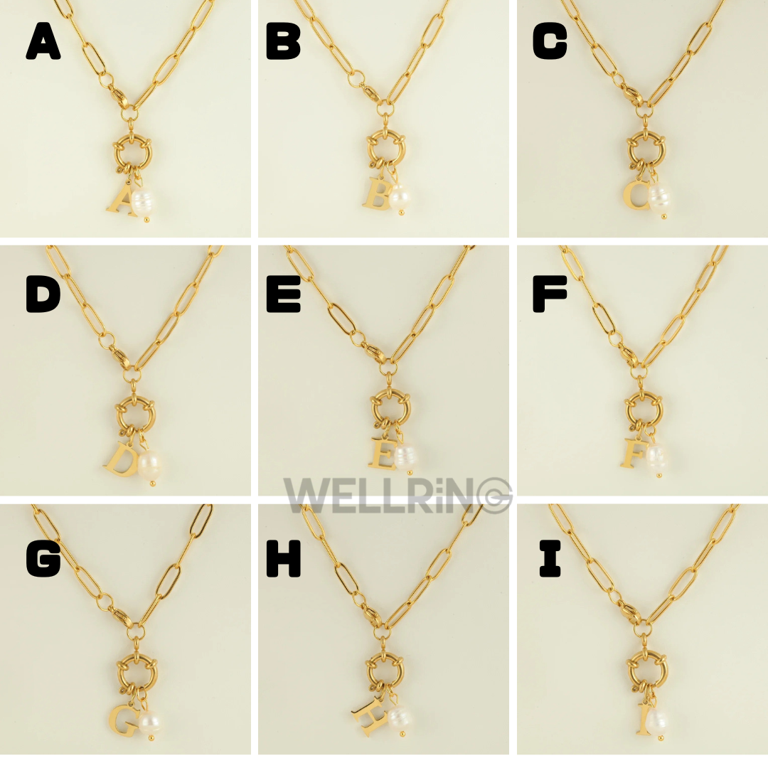 バロックパールとイニシャルレターのクリップチェーンネックレス
