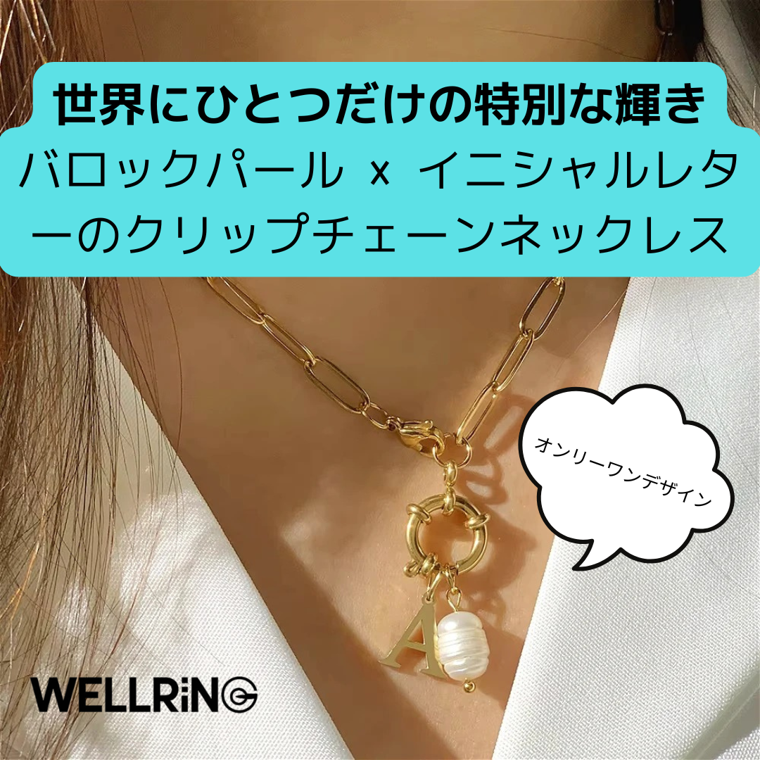 バロックパール × イニシャルレターのクリップチェーンネックレス